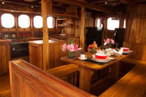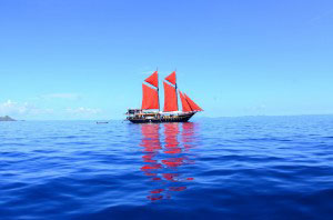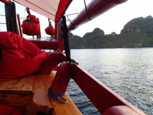 Expect some wonderful Asian fusion culinary delights during your stay on board Calico Jack. Dinner is a 3 course gourmet affair served by the crew. You can either choose your own menus and enjoy your favorites just how you like them or, much like your vacation, you can adventure into an unknown journey of discovery! The kitchen crew are even happy to share their culinary knowledge with you if you would like to enjoy some cooking classes. Eating aboard Calico Jack is an event to be enjoyed, savored and indulged in.
