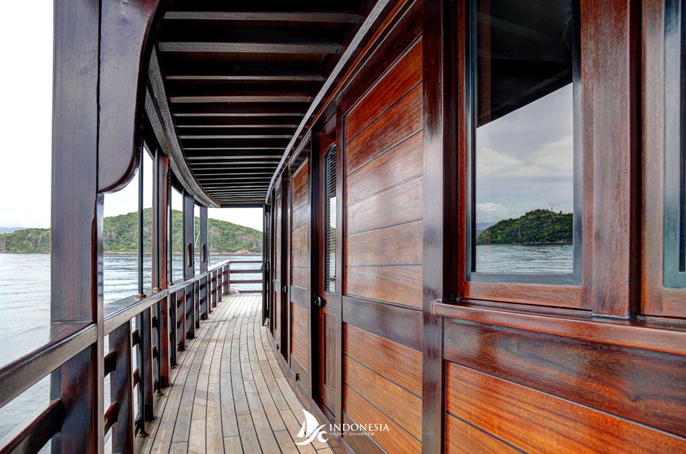 Within her 3 decks, there are many different areas to be enjoyed or to entertain in; some open to the sun and others are under cover or private. Simply perfect for cruising the equatorial waters of the Indonesian archipelago.