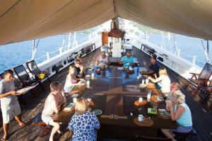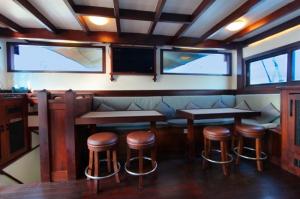 The vessel is fitted with all internationally required safety and communication equipment such as SSB and VHF radios, life jackets, life rafts, and satellite telephone. Experienced navigators consider it an axiom that the seaworthiness of a vessel depends on the seaworthiness of the crew. Our ship has a well-trained and well-seasoned Indonesian crew of sixteen, we are proud of the fact that several of the crew members who joined us when the vessel was launched are still on board today.