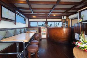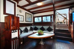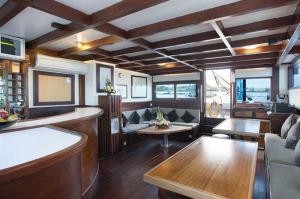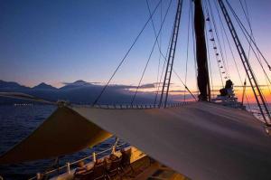Each of the 6 cabins onboard are equipped with individually controlled air conditioning, private bathroom, plenty of space and towel refresh service. Excellent food and snacks (vegetarian upon request), tea, coffee and mineral water are served on board. Guests may relax on the sundeck or in the spacious lounge and bar equipped with TV, DVD and music centre. A selection of wines, beer and spirits are also available for sale.