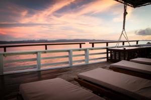 Katharina Indonesia offers tour itineraries to the spectacular sites throughout the Indonesian archipelago. Snorkeling clear turquoise waters, hiking volcanoes, visiting villages and relaxing beach side while being pampered by the attentive crew will make a Katharina Indonesia liveaboard holiday the ultimate adventure. Led by Captain Iwan and operated by a crew of 12, the 40-metre Katharina sits low in the water, making her a most beautiful looking boat. Built in 1995 in Kalimantan, her slim hull was originally planned for use as a commercial freighter before she caught our eye with her simple lines and sleek structure.