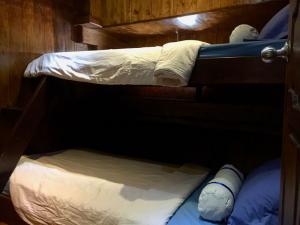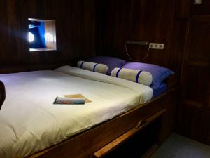 - Six Guest Cabins double bed for Maximum 10 Guest. Five cabins at lower deck and 1 cabin at main deck, each cabin has a private bathroom with water flushing toilet and shower. Washbasin and soap toiletries in your cabin. Individually controlled air conditioning. Towels, changing bed sheets and covers. Reading light. Storage area and cabinets.